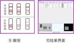 采用膠體金免疫層析檢測卡作為一級傳感器,即待測物與檢測卡上的捕獲抗體和膠體金標記抗體的結合產生顏色變化,顯色的強度變化與待測物含量相關,而后測量系統運用光電掃描測試反應區,獲得光電信號,然后對光電信號的強弱進行分析處理,定量地分析出待測物的含量。