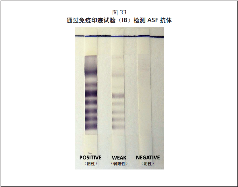 ASFV 感染后首先刺激機體產生抗體的多種病毒蛋白,通過在IB 試驗,可在所有感染動物中標定地檢測到。動物感染后7-9 天血清轉陽,并可在康復動物體內存在幾個月。接種其他病毒疫苗的動物血清,可能會產生非特異性反應,因此需要借助于如IPT 或者FAT 等技術進行確認。